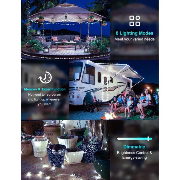 【Widely Used Decoration String Lights】: With IP65 waterproof performance, can withstand any weather when used outdoors. This outdoor solar lights is a great choice for Party Decorations, Wedding Decorations, Holiday Decorations, Home Decor, Patio, Garden, Yard, Fence, Porch, Tree, Roof and so on.